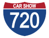 A shield-shaped sign reading 'Car Show 720' with a red top section and white text, and a dark blue bottom section with white text.
